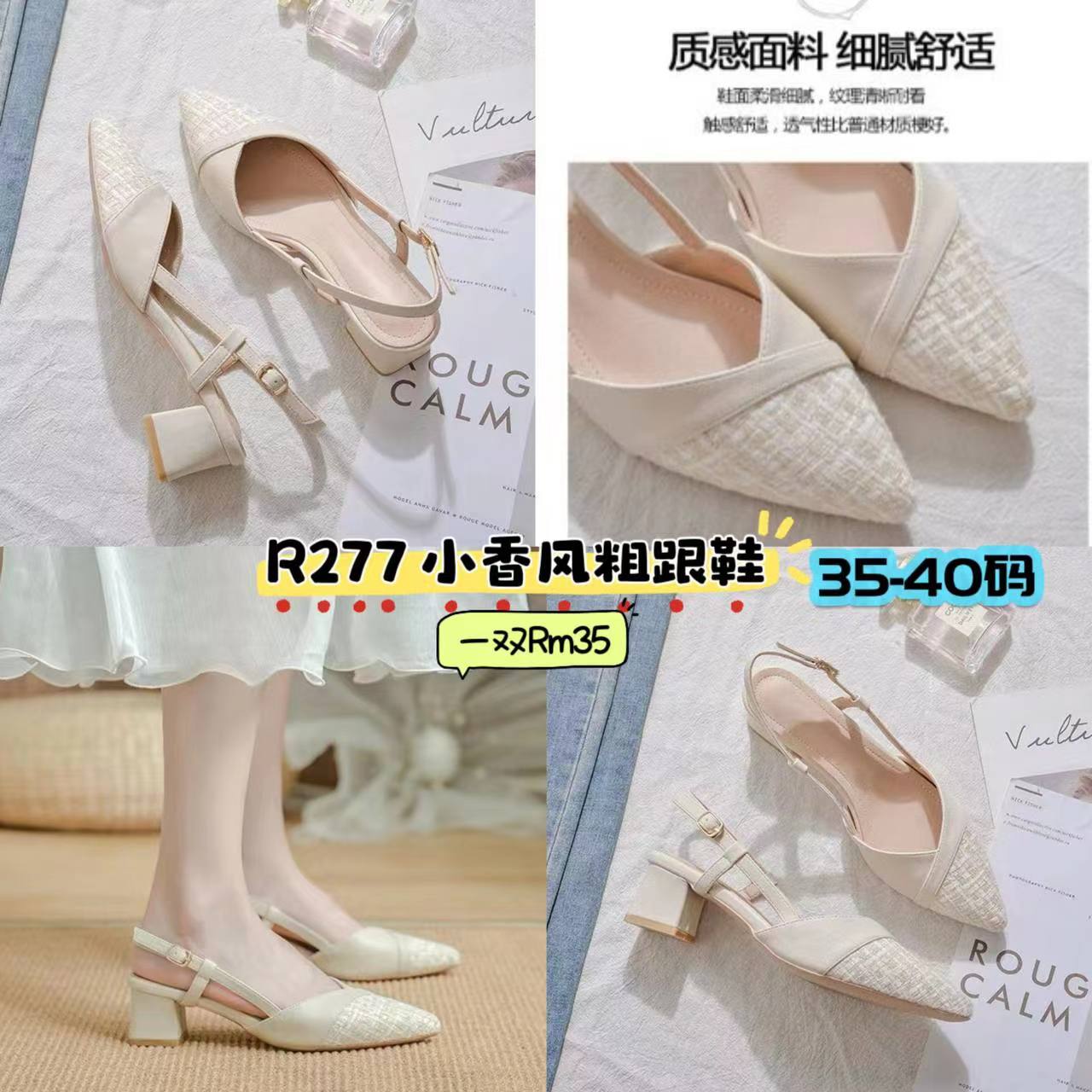 R277 小香风粗跟鞋 quantity