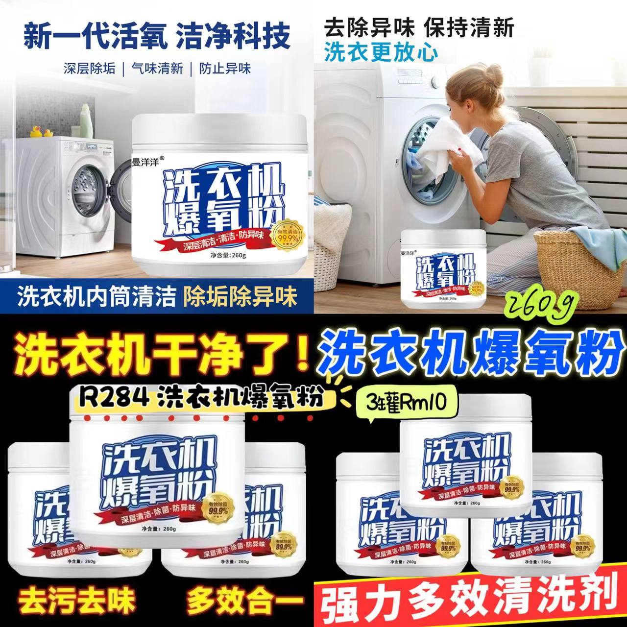 🎀 家用洗衣机清洁去黄除异味,强效桶装水垢除味爆氧粉!不仅能深层去黄溶解祛味,还能去除洗衣机内部的污垢和异味