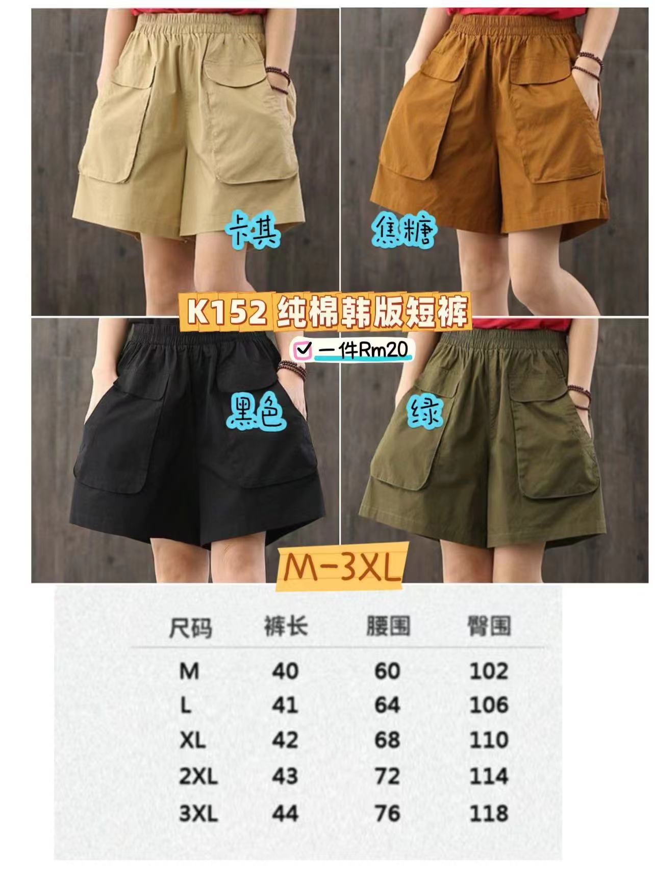 SS年货团 23/10- 10/11 🧧 K152 纯棉韩版短裤 💰一件Rm20