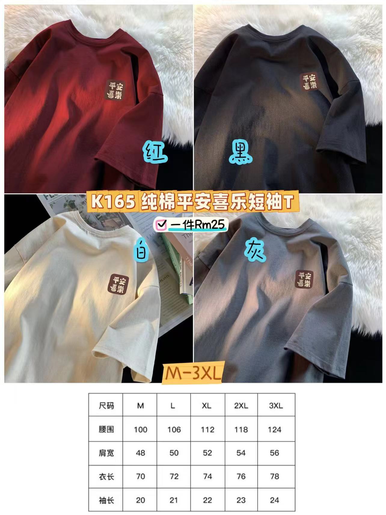 K165 纯棉平安喜乐短袖T