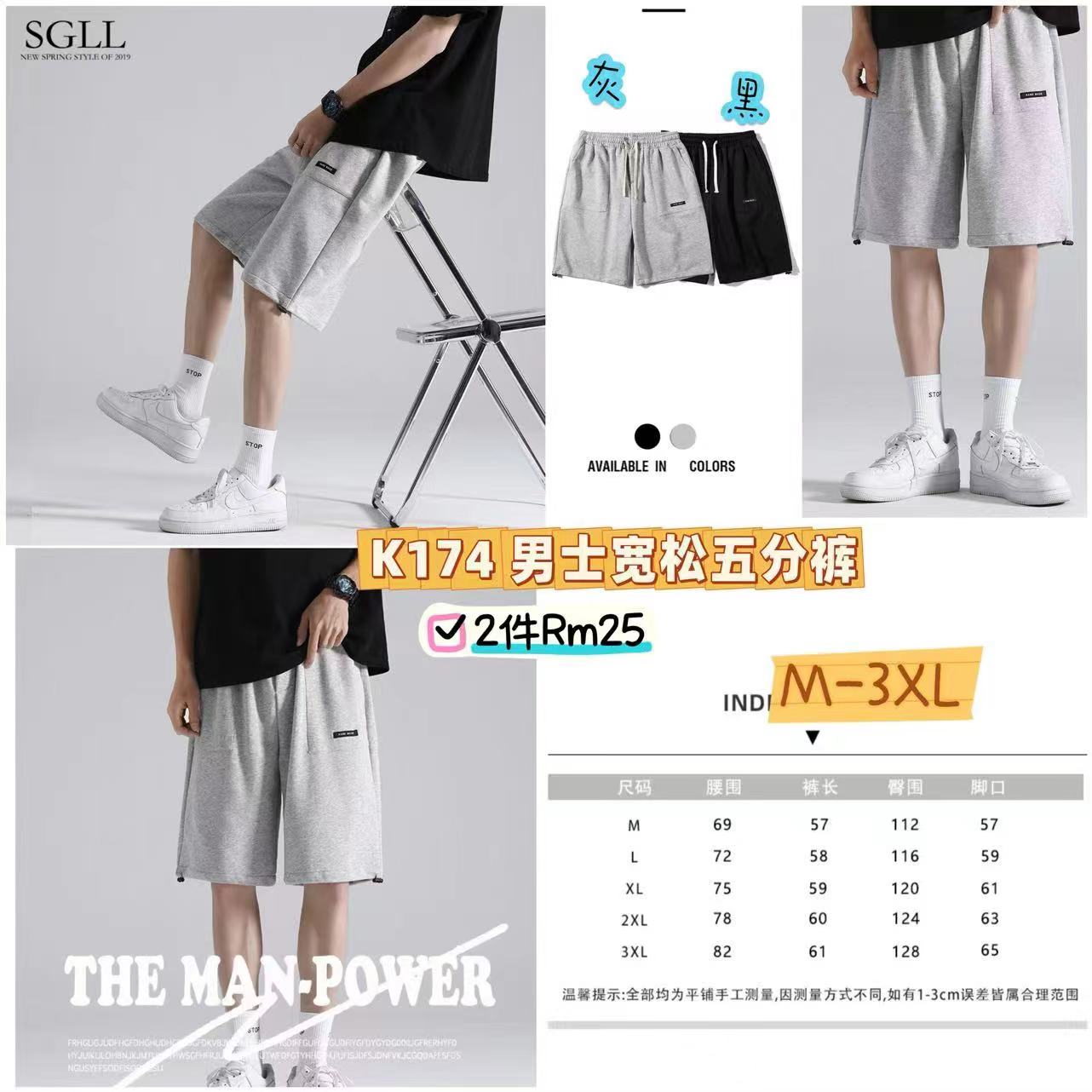 K174 男士宽松五分裤