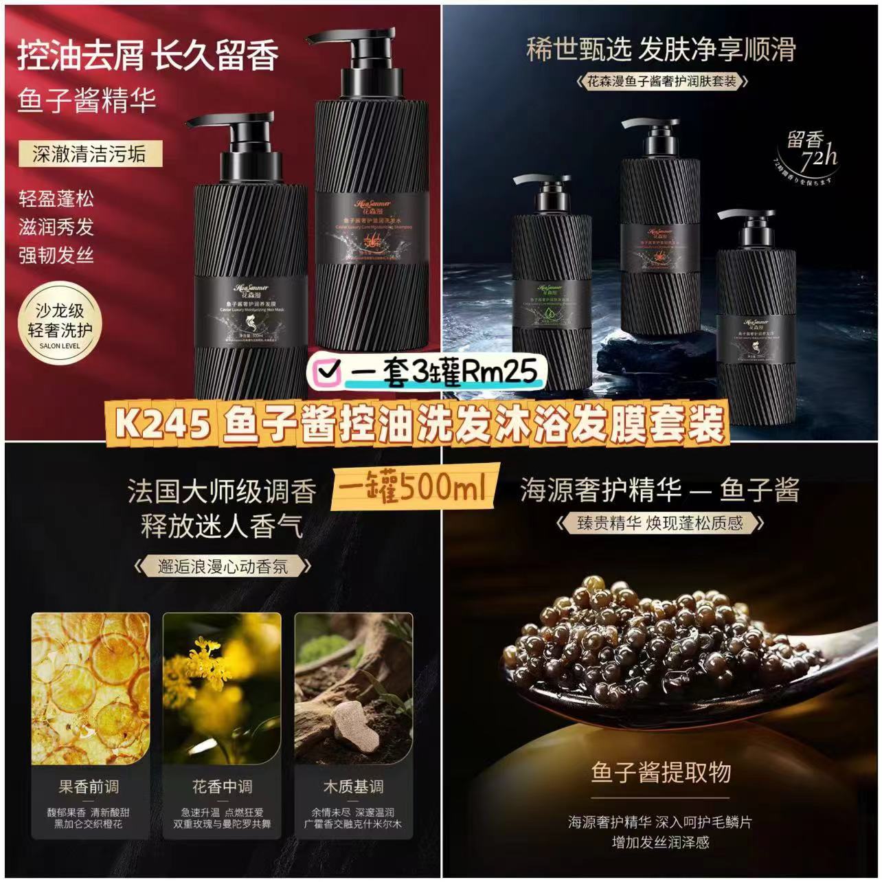 K245 鱼子酱控油洗发沐浴发膜套装