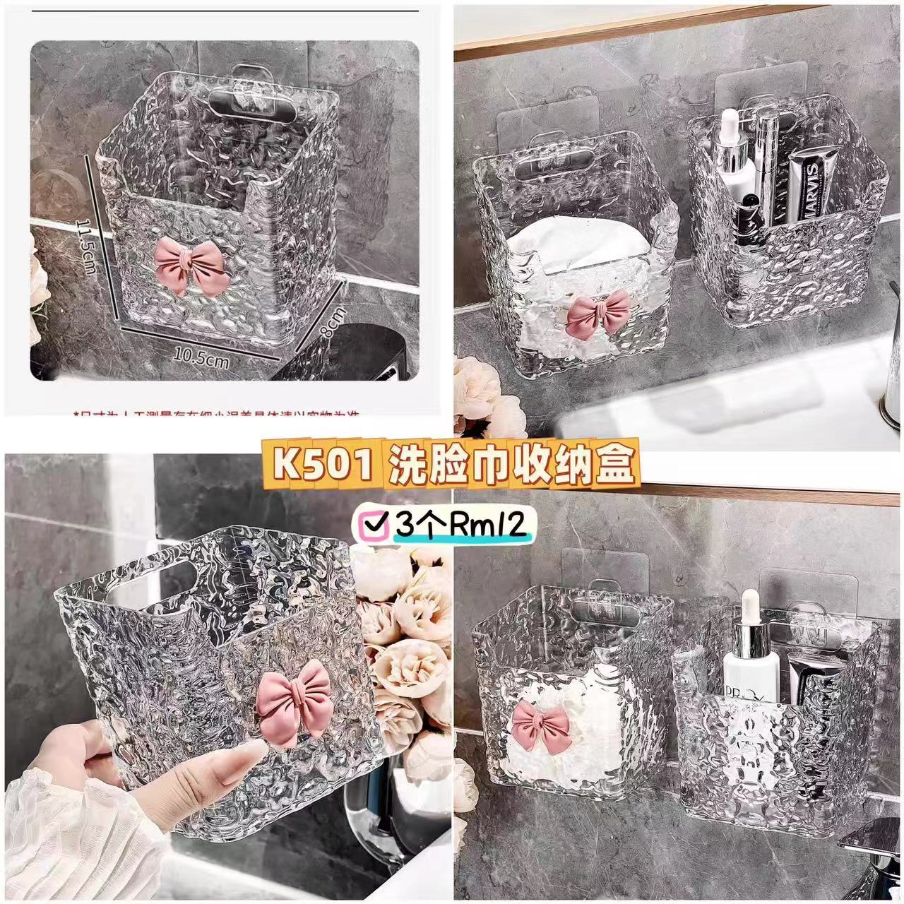 🎀 #洗脸巾收纳筐 免打孔收纳盒 冰川纹壁挂式废弃洗脸巾收纳筐家用浴室洗漱台二次棉柔巾面巾纸卫生间置物架