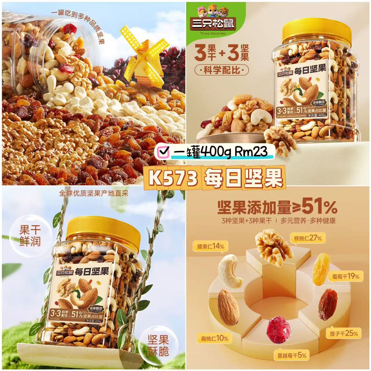🎀 三只松鼠,每日坚果的羊毛又来了!!三只松鼠每日坚果推出了大罐装的产品!一罐400克的坚果足够吃很久了!直接食用或者搭配酸奶都非常不错!里面有你喜欢的各种坚果!