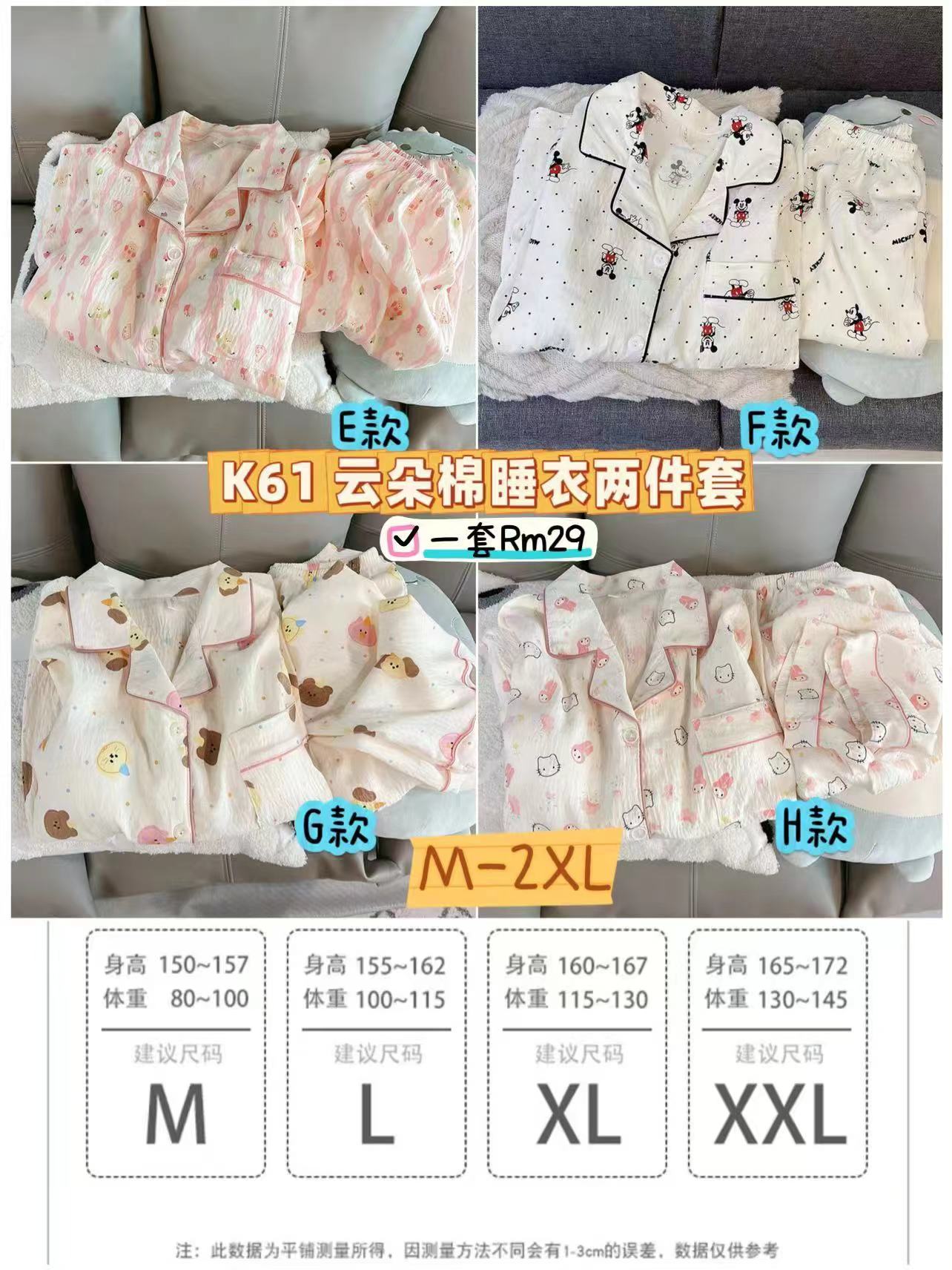 SS年货团 23/10- 10/11 🧧 K61 云朵棉睡衣两件套 💰一套Rm29
