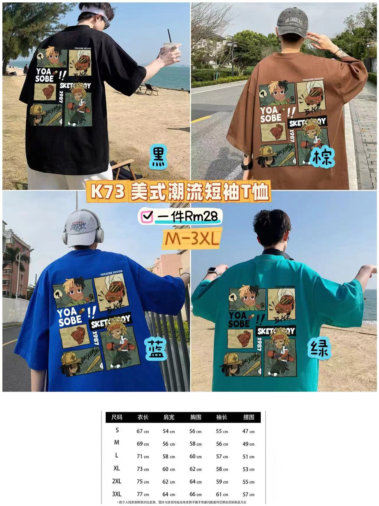 SS年货团 23/10- 10/11 🧧 K73 美式潮流短袖T恤 💰一件Rm28