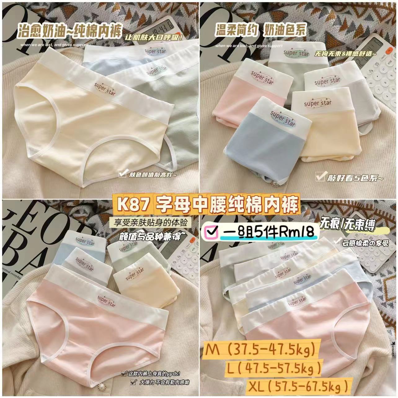 / K87 字母中腰纯棉内裤