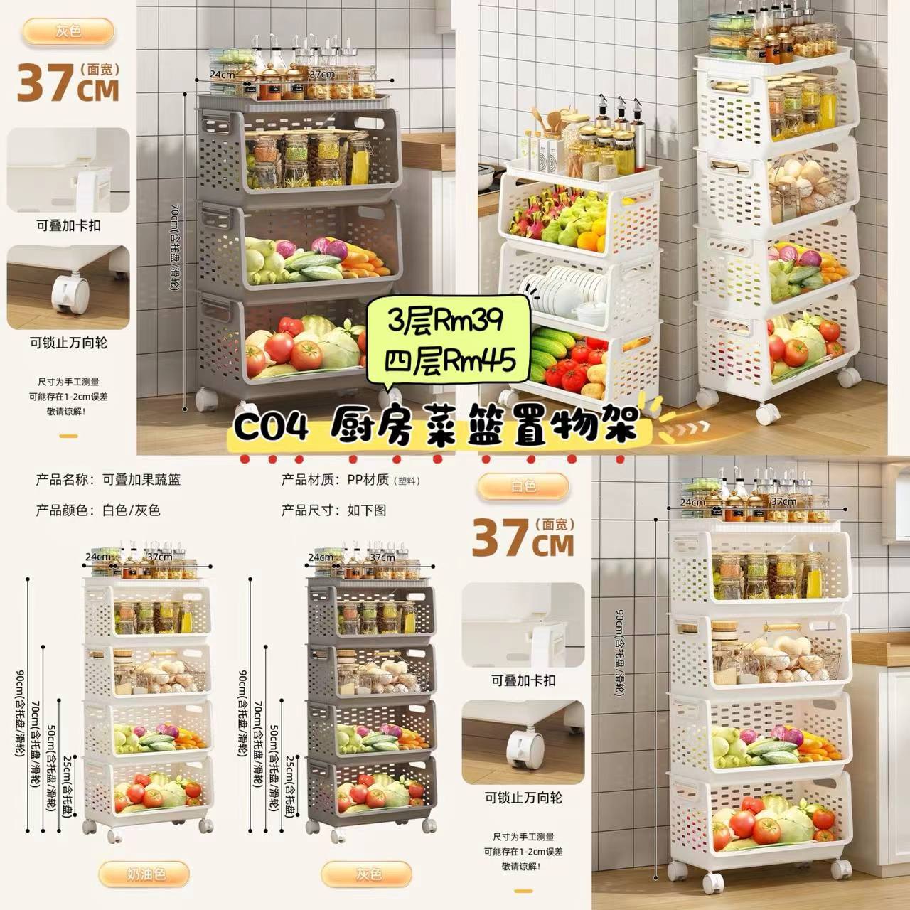 新一批爆款团购又来了28/8-8/9 🌟 C04 厨房菜篮置物架 💰3层Rm39 💰4层Rm45