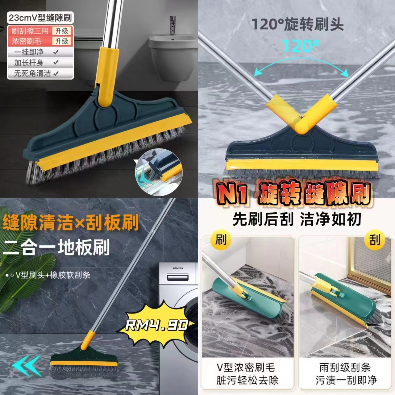 V型地板刷,刮水两用硬毛瓷砖清洁神器