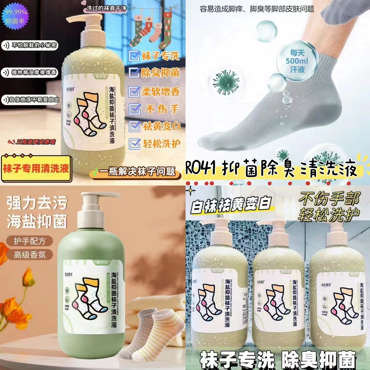 抑菌除臭清洗液,去黄通用海盐袜子清洗液持久留香抑菌清洗剂 一罐500ml