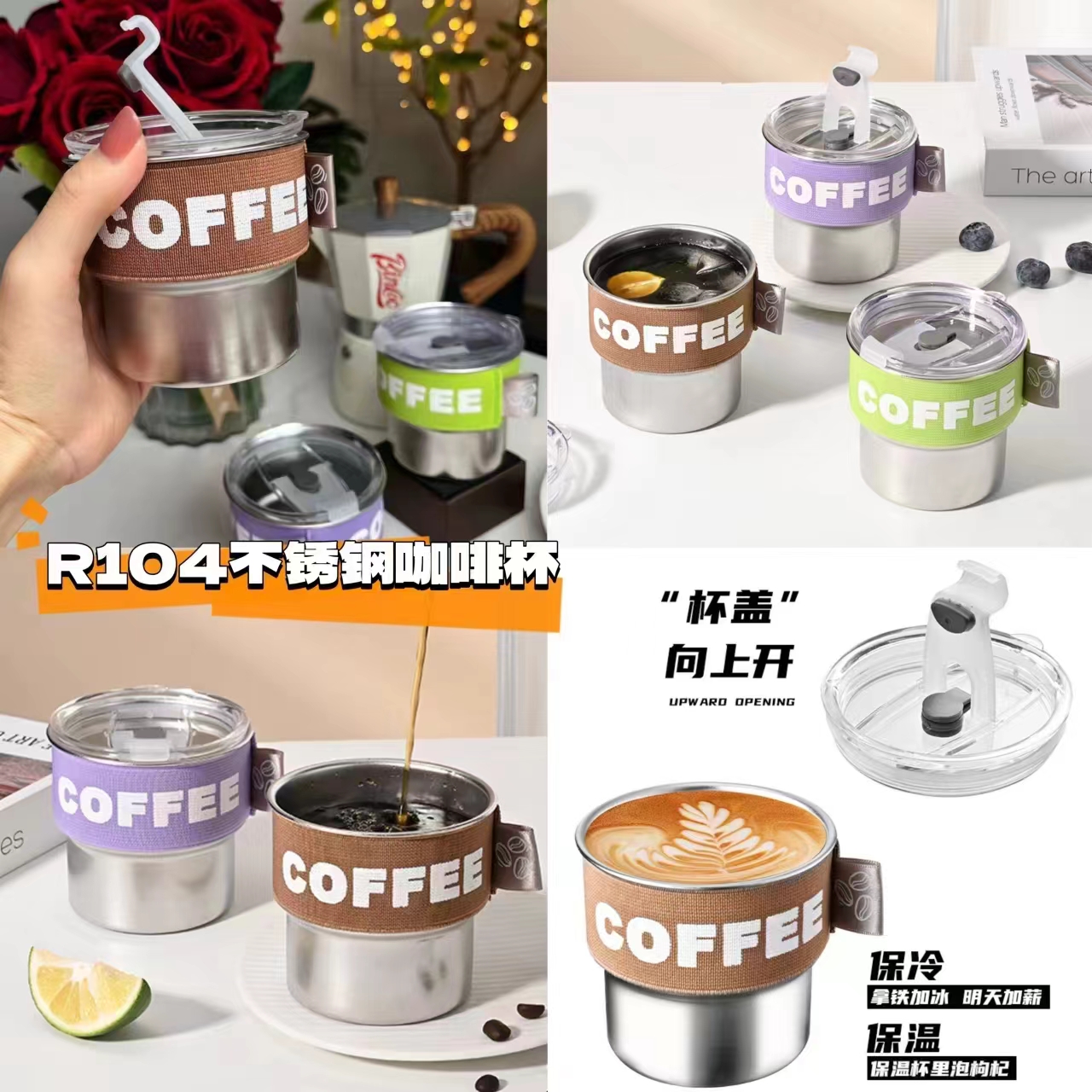 304不锈钢咖啡杯,防摔耐高温随手杯