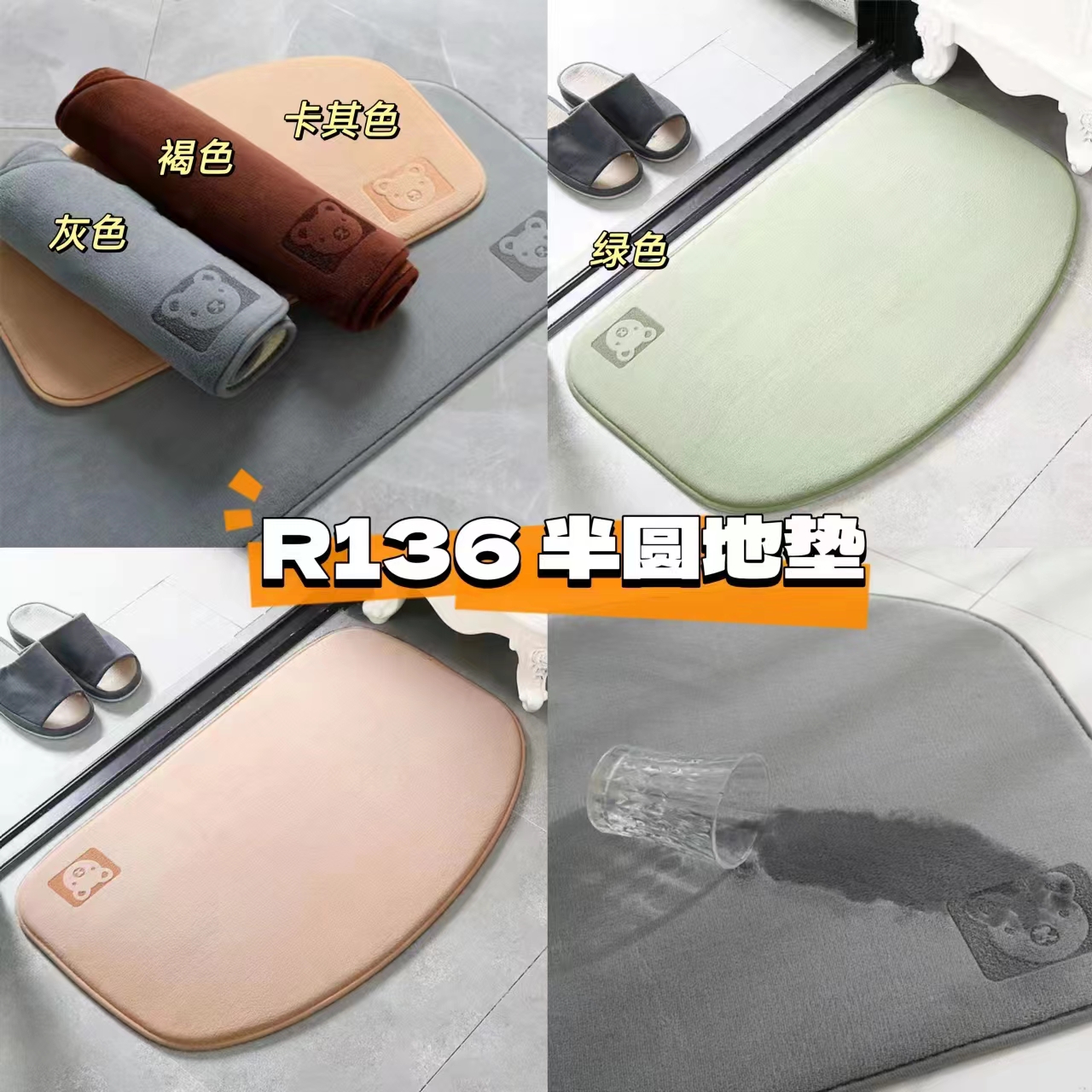 跨境半圆烫印卫生间地垫浴室门口吸水脚垫厕所防滑地垫 40×60cm 颜色:卡其/青/褐/灰 #VsTeam全马第一手价 #下单送礼物🎁