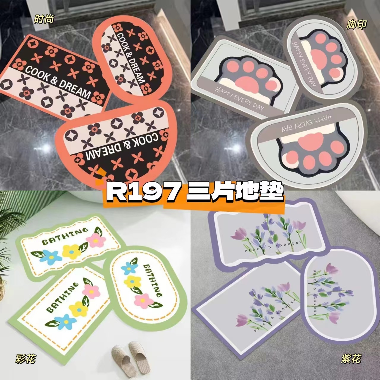 【三件片】浴室门口地垫卫生间吸水免洗地垫厕所防滑脚垫 款式:紫花,彩花,脚印,时尚 40×60cm #VsTeam全马第一手价 #下单送礼物🎁