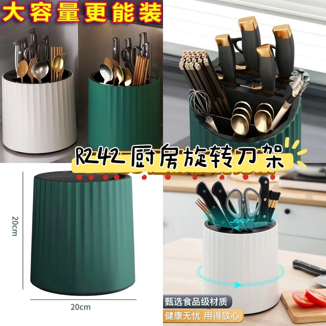 厨房旋转刀架置物架,台面多功能筷子筒刀架一体收纳盒