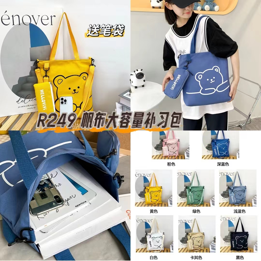 斜挎包学生帆布包,新款手提补习袋学生包单肩帆布袋大容量,送笔袋
