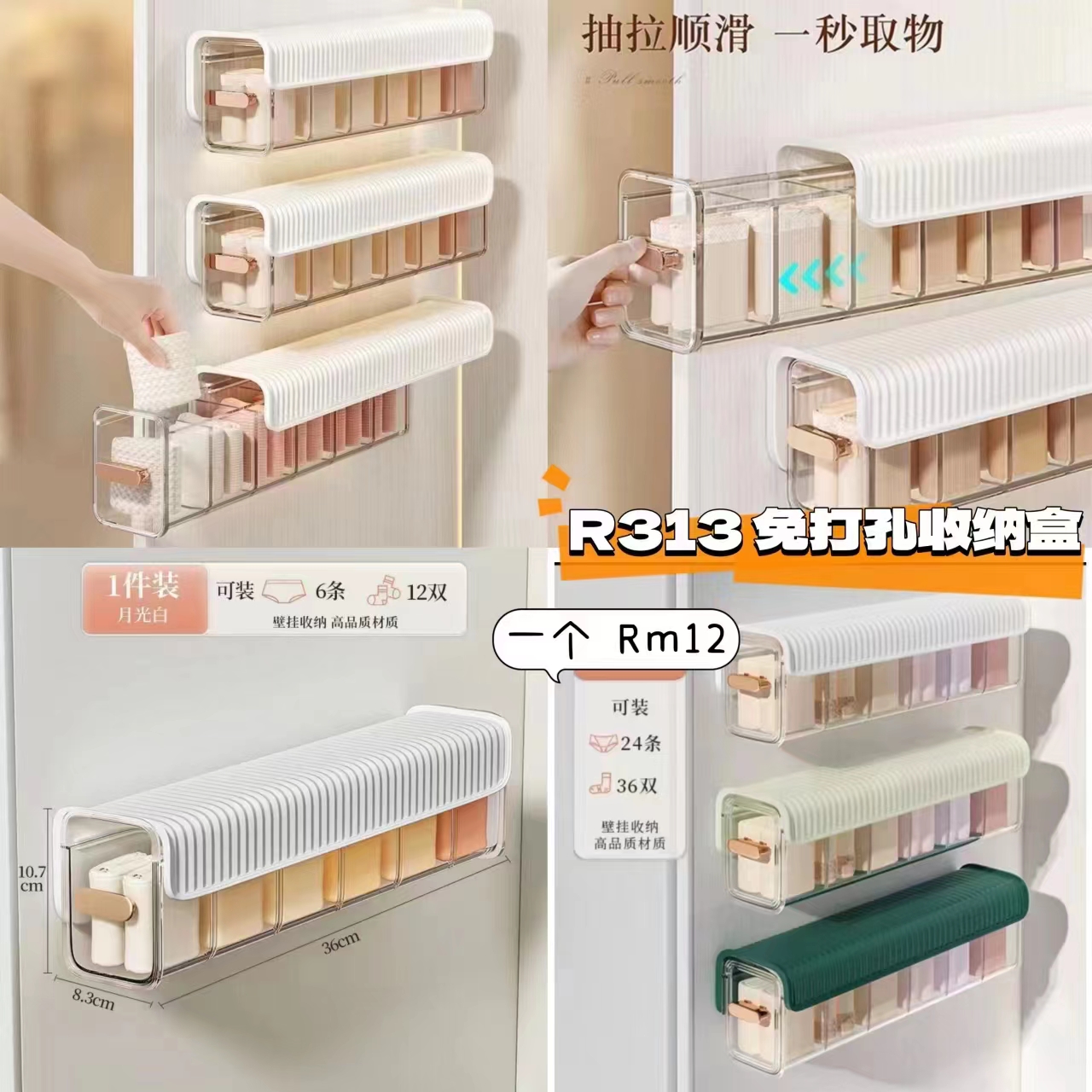 R313 免打孔收纳盒 🛒 #一个RM12