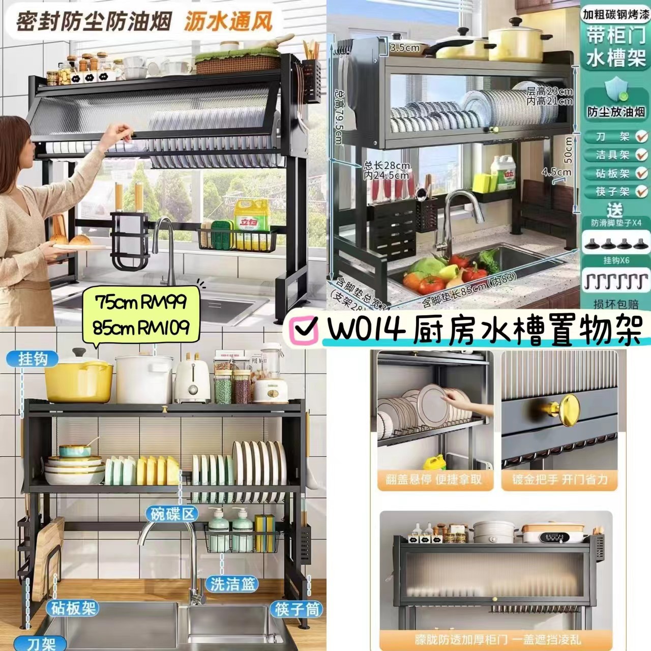 W014 厨房水槽置物架 📦 #75厘米RM99 📦 #85厘米RM109
