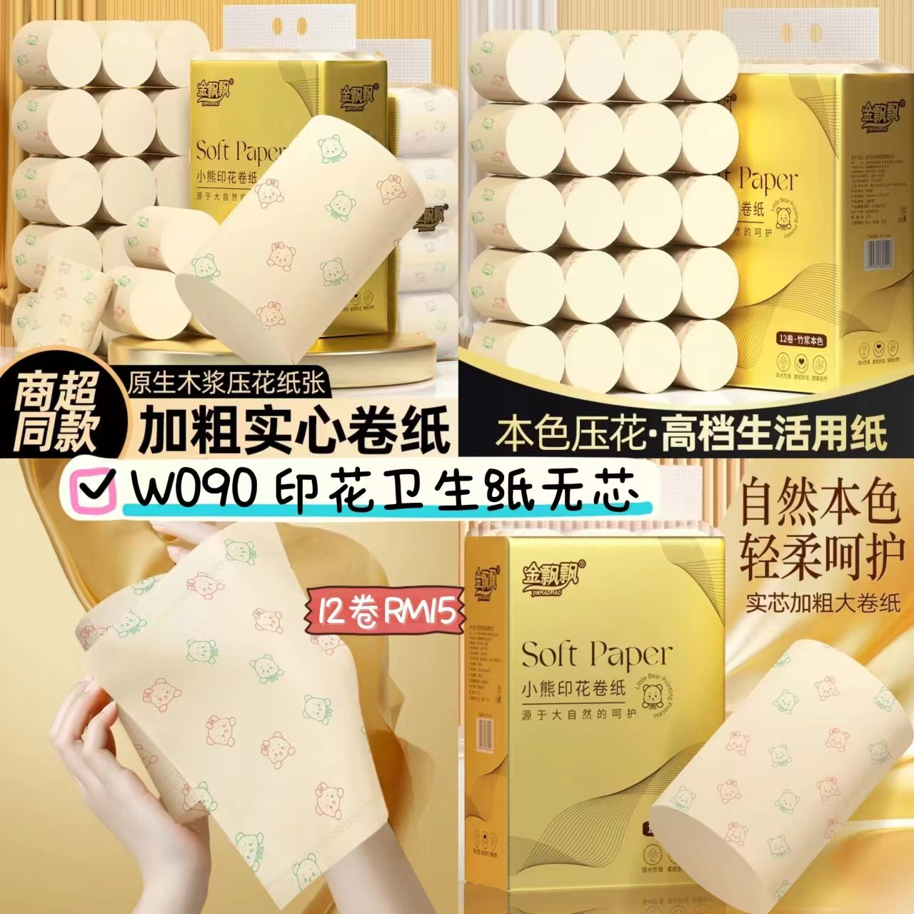/ W090 印花卫生纸无芯