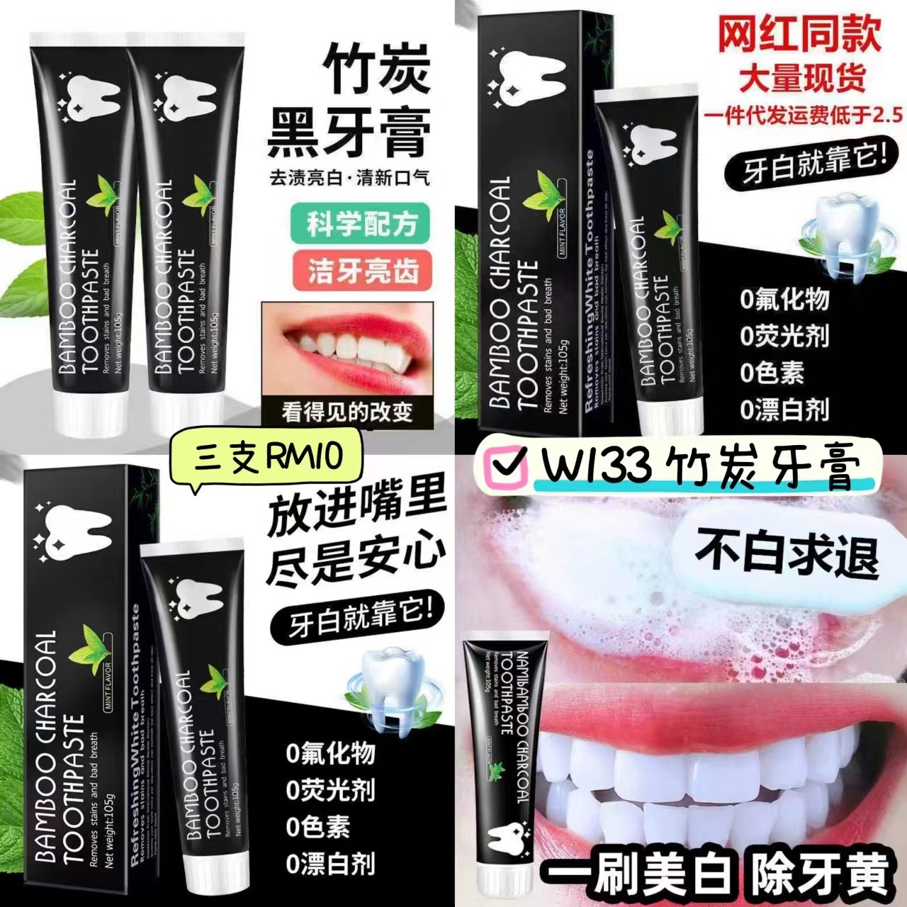 抖音网红同款牙膏椰子壳竹炭牙膏,美白竹炭黑色活性炭牙膏去黄去口臭