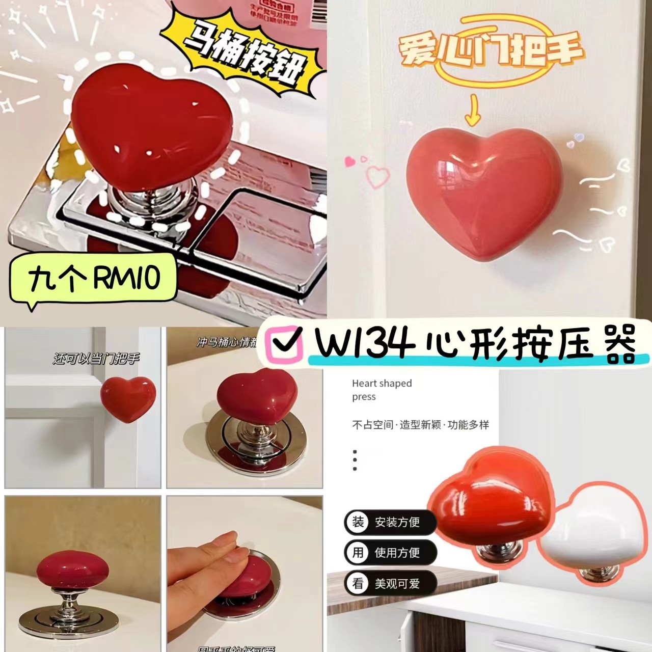 心形马桶按压器马桶配件,按水保护美甲卫生间冲水按钮爱心马桶按键