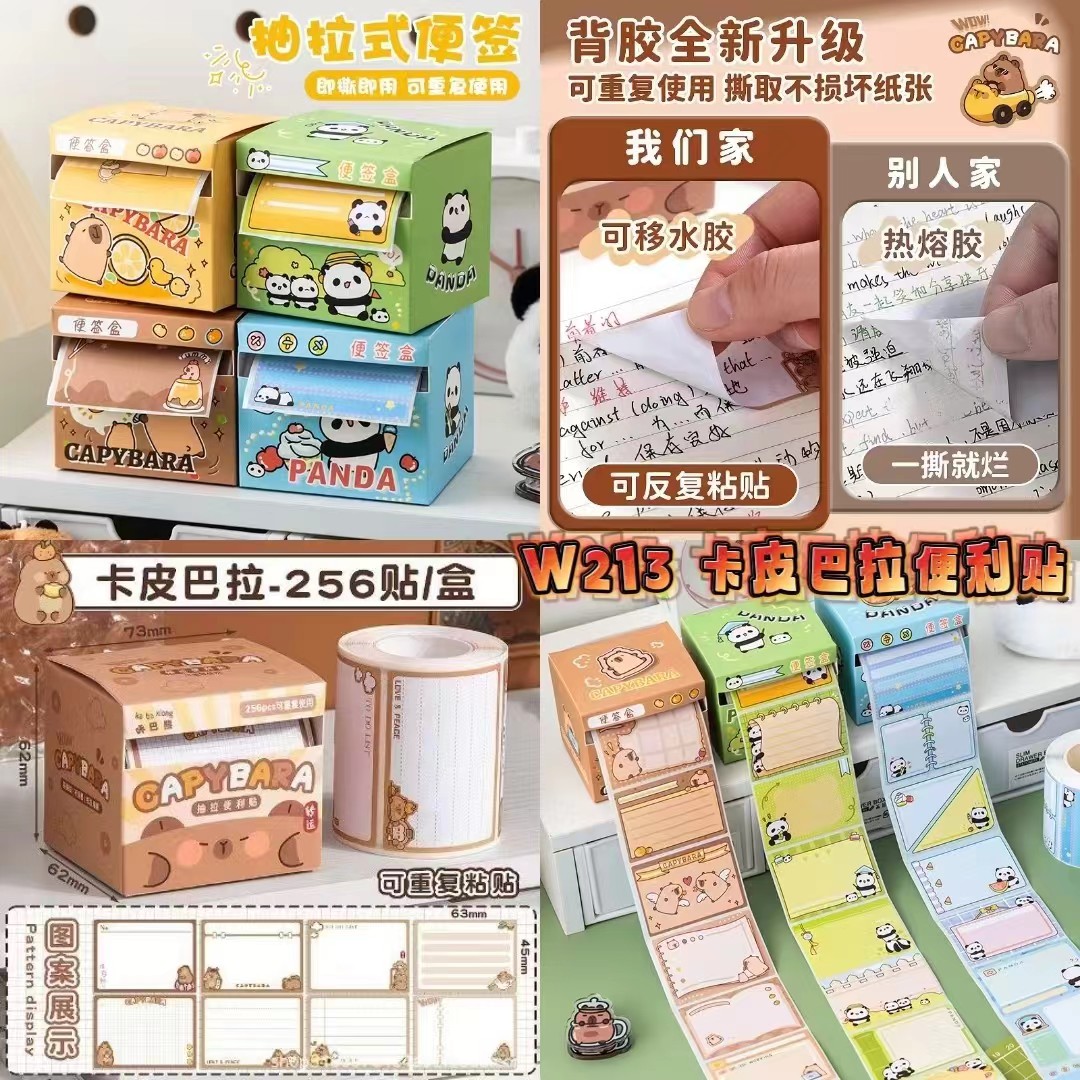 卡皮巴拉便利贴抽拉式盒装,高颜值卡通小学生功能全粘便签纸,一盒256贴