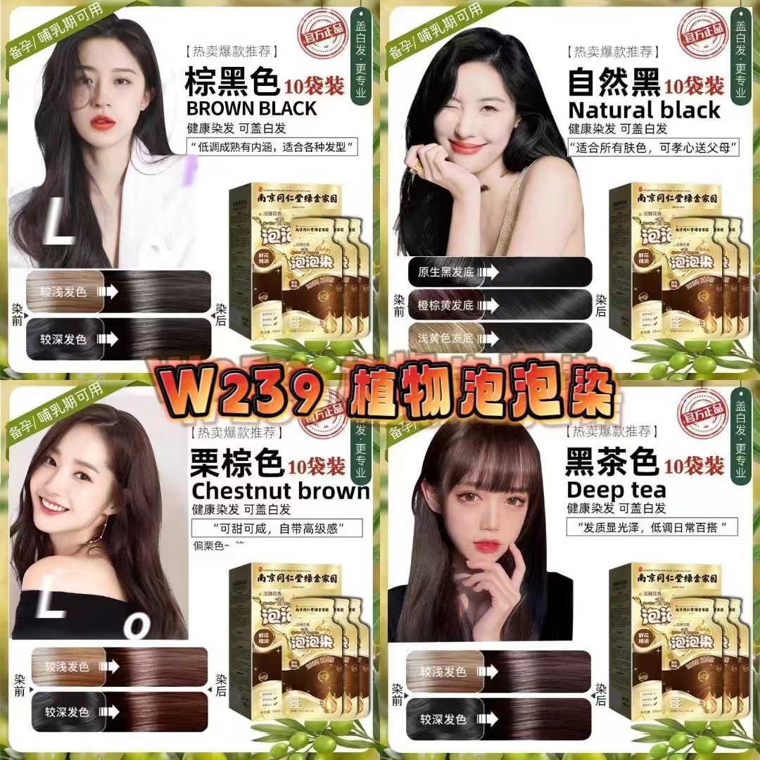 南京同仁堂独立袋装泡泡染发剂,植物天然自己在家染发膏遮白发,一包30毫升