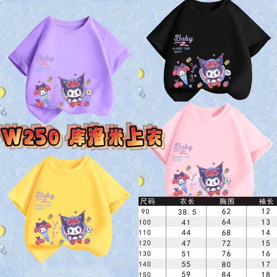 库洛米新款女童洋气T恤,联名三丽鸥中小童可爱短袖大童T恤