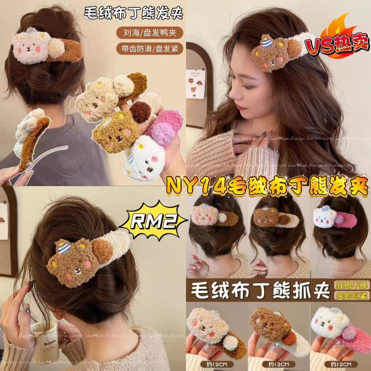 超甜百搭毛绒布丁熊❤️大号后脑勺抓夹
