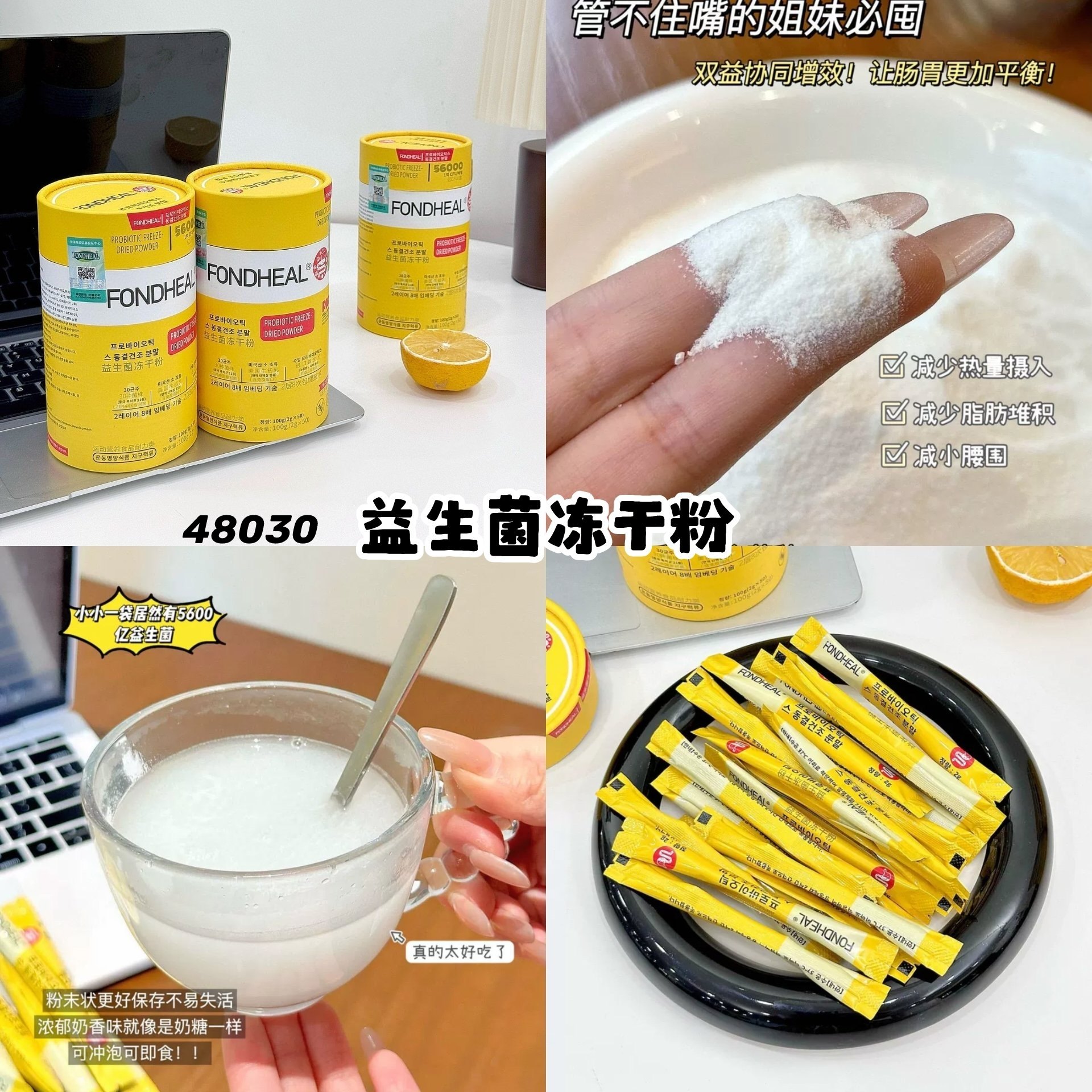 高段位益生菌‼️,高达5600亿活性益生菌,都是肠胃所需成份,能够促进肠胃蠕动,加快新陈代谢~