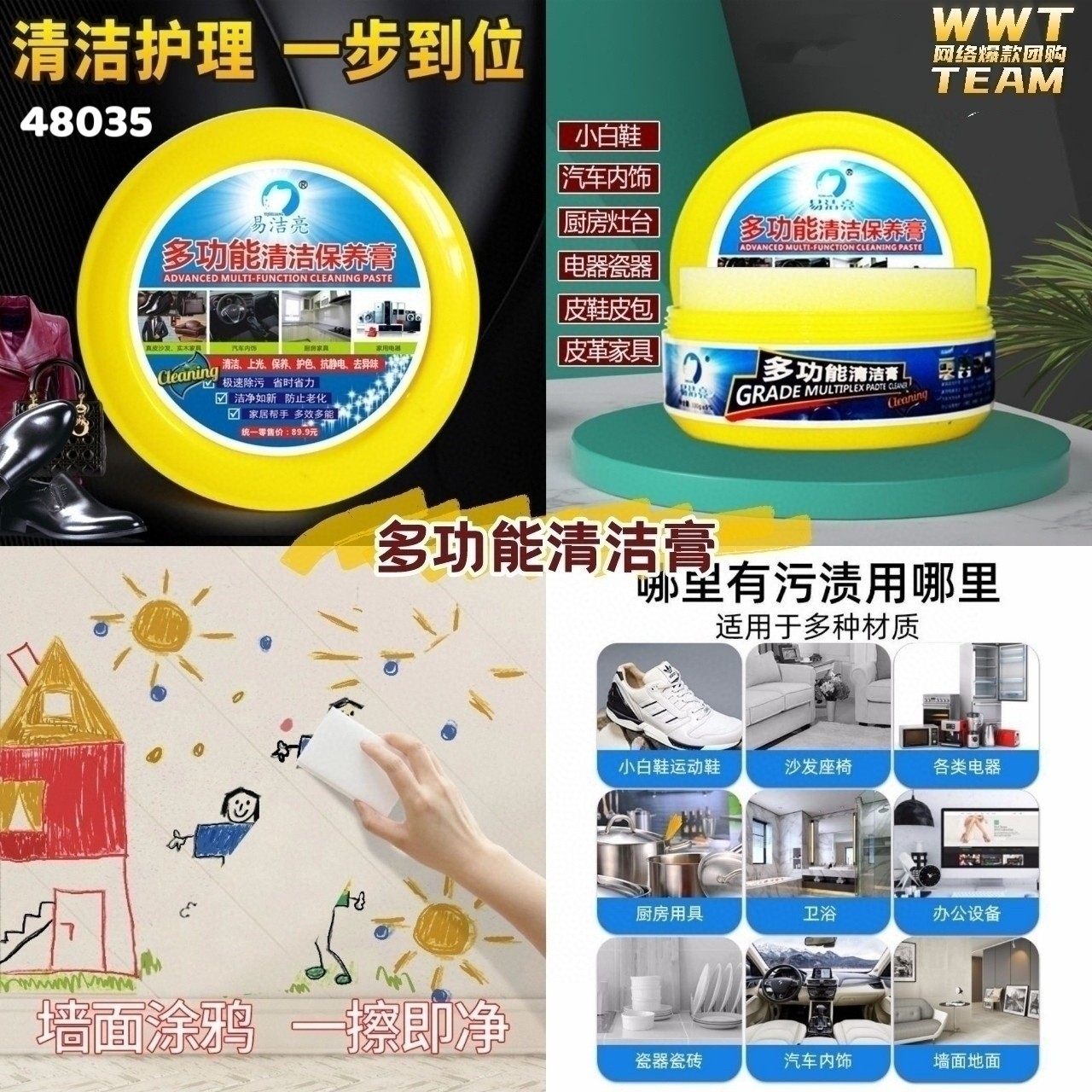 推荐你们用这个清洁膏,无论什么污渍都能轻松祛除👍🏻,皮革沙发、各类电器、浴室厨房等,墙面涂鸦,擦拭过的地方焕然一新,还有防护保养的功效喔~😍,一罐330ml