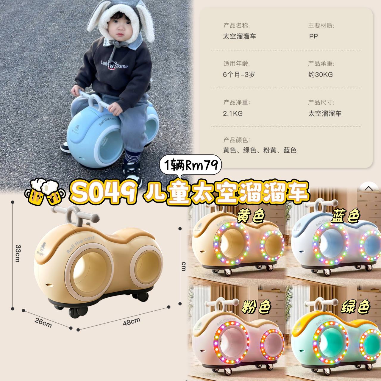 ZA🇨🇳九月份好物团 S049 儿童太空溜溜车 💰Rm79
