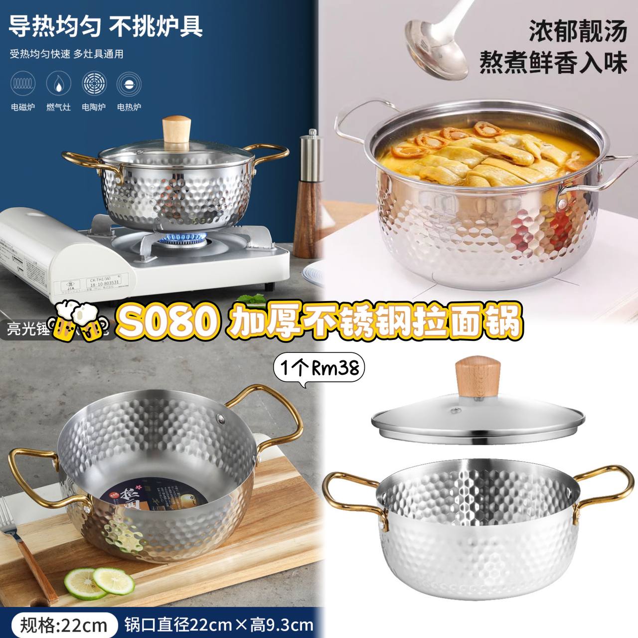 ZA🇨🇳九月份好物团 S080 加厚不锈钢拉面锅 💰Rm38(包含锅盖)