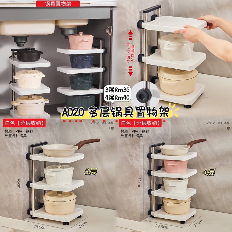 家里厨房大小锅具可以叠放在柜内水槽柜子了,可以放一个#锅具收纳架 大小锅都可分层收纳上去,拿取使用也方便,高度还可调节,推荐!💓