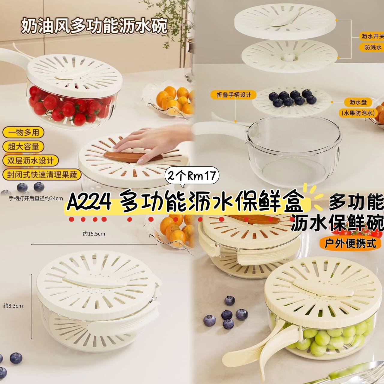 超值团购29/7-10/8🛒 A224 多功能沥水保鲜盒 💰Rm17(2个)