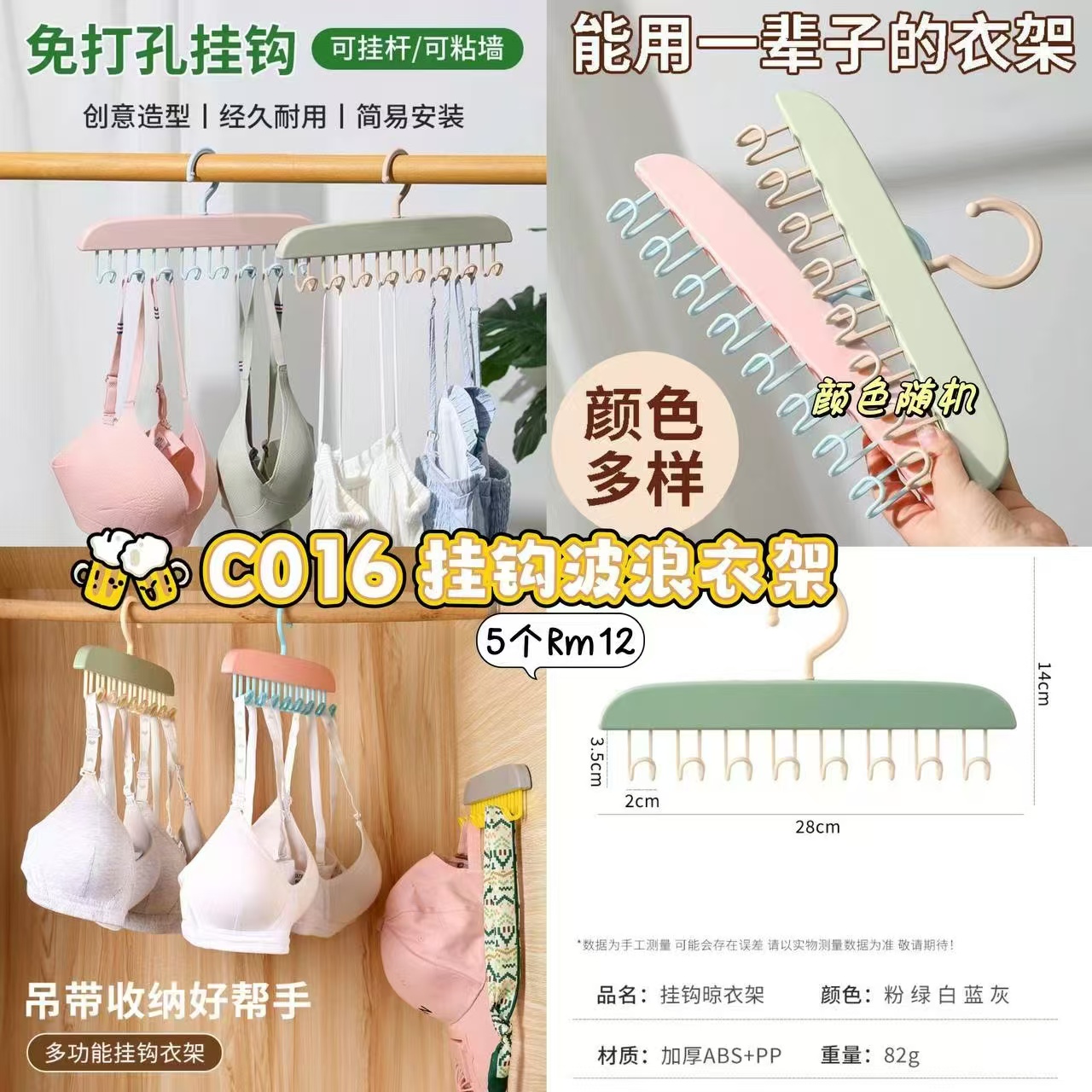 之前的波浪衣架升级了,一个可以挂8件衣服,节省空间还好拿好取💓