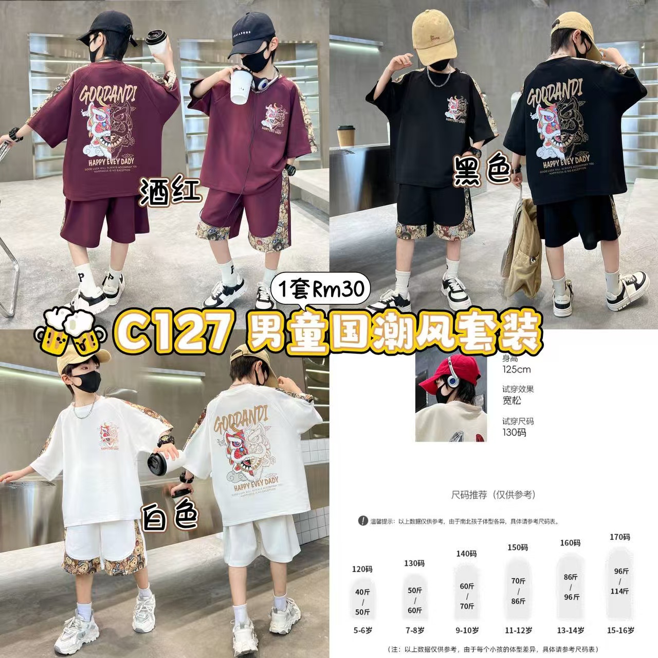 国潮风短袖套装 儿童短袖短裤两件套,新中式复古提花套装🧨