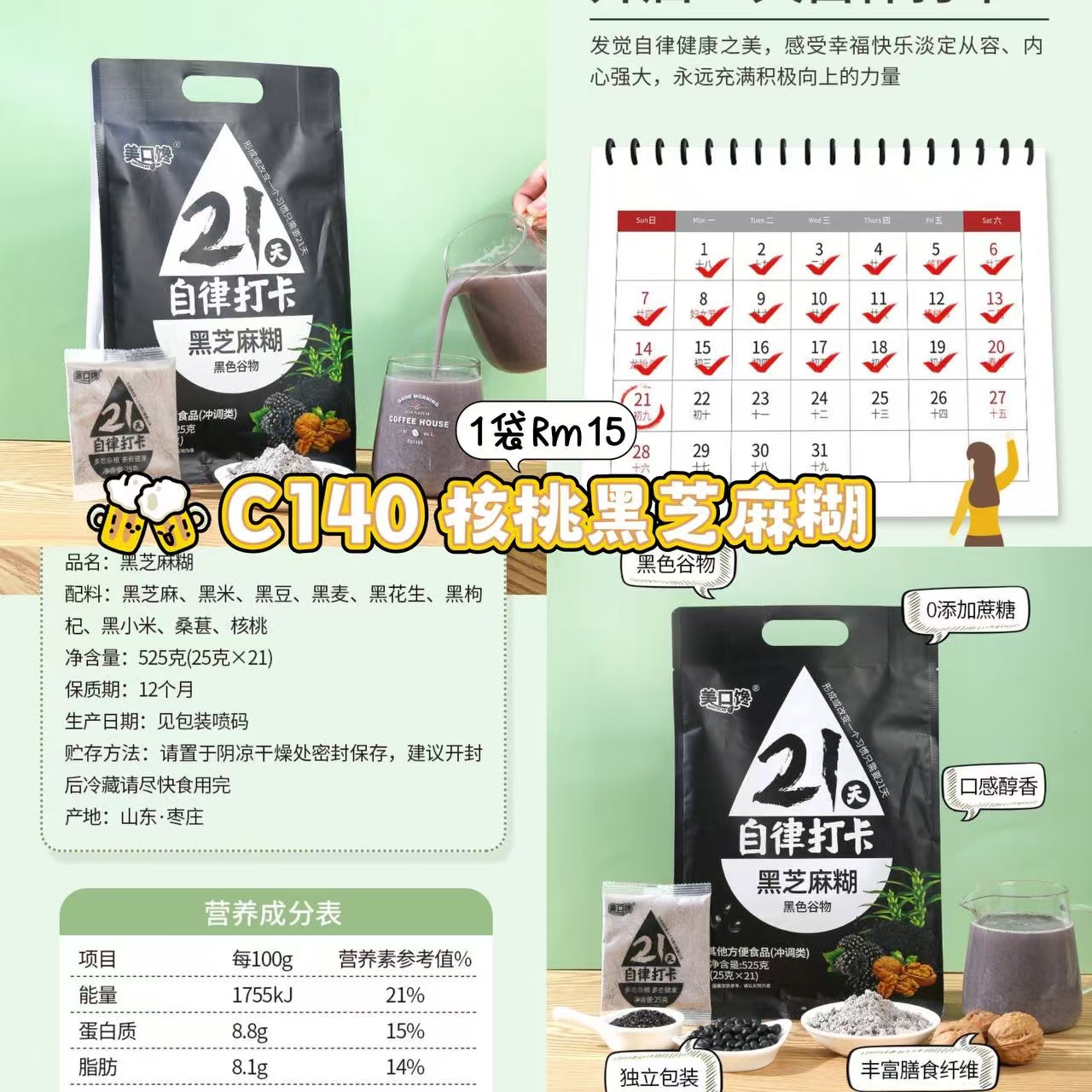 C140 核桃黑芝麻糊 quantity