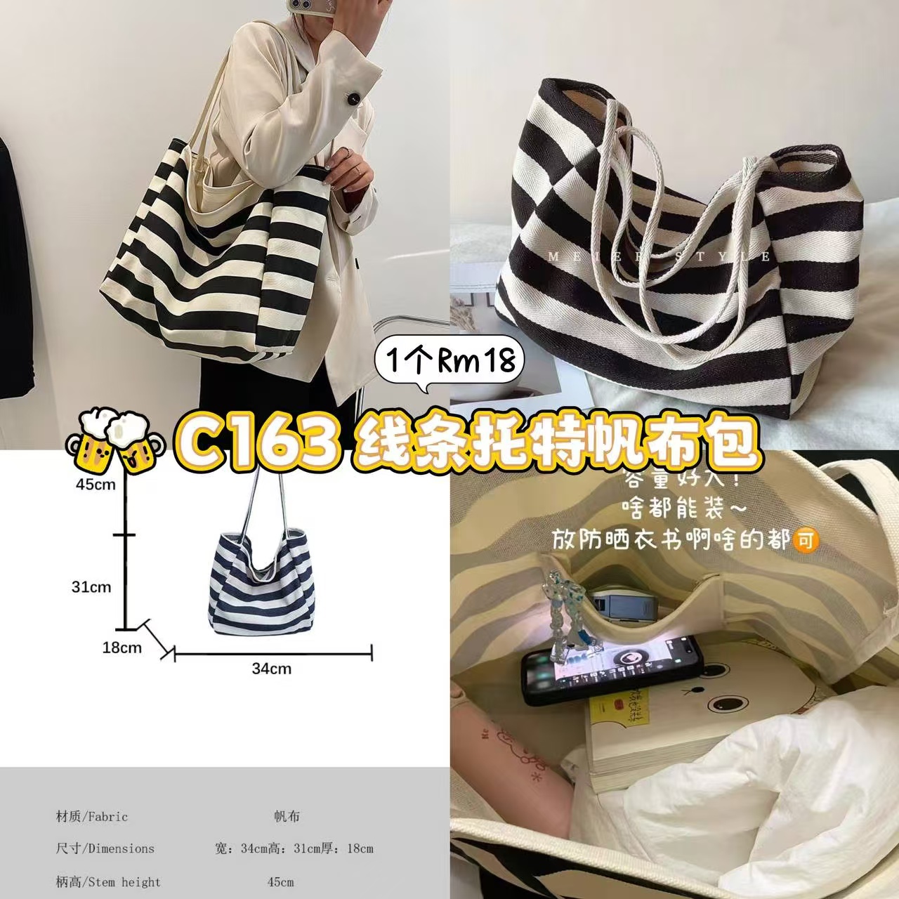 时尚潮流,韩风必入!独特条纹装饰,帆布包轻松出街✨