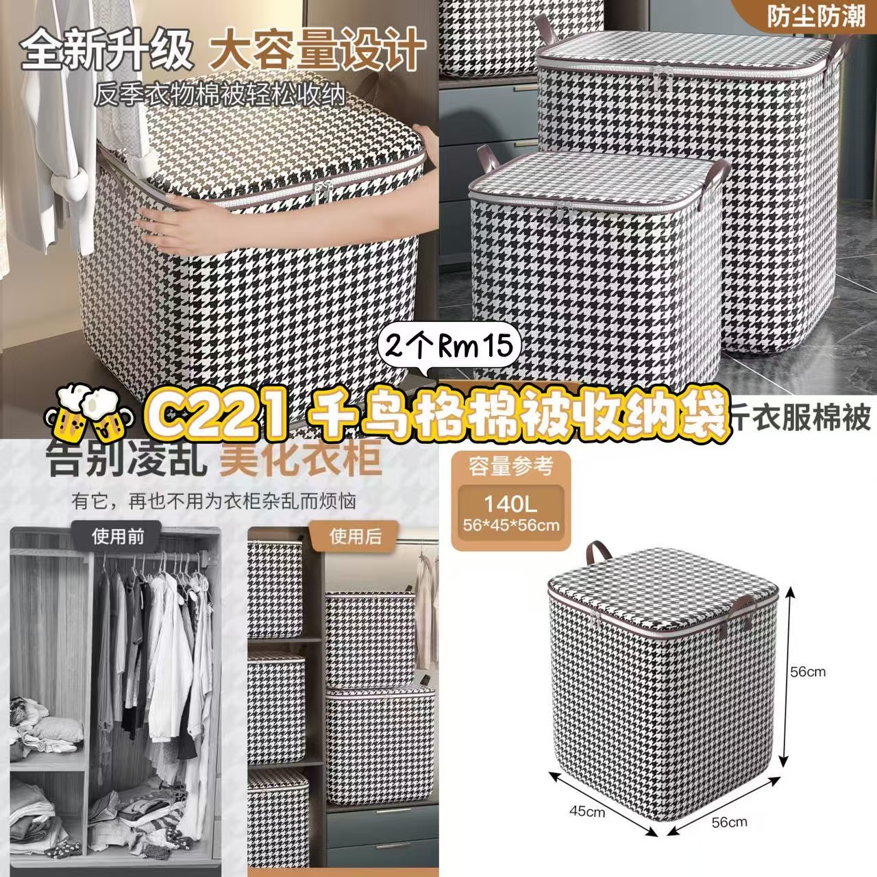 / C221 千鸟格棉被收纳袋