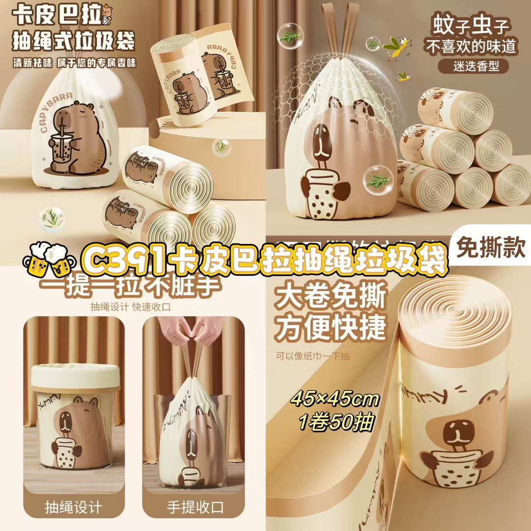 C391 卡皮巴拉抽绳垃圾袋
