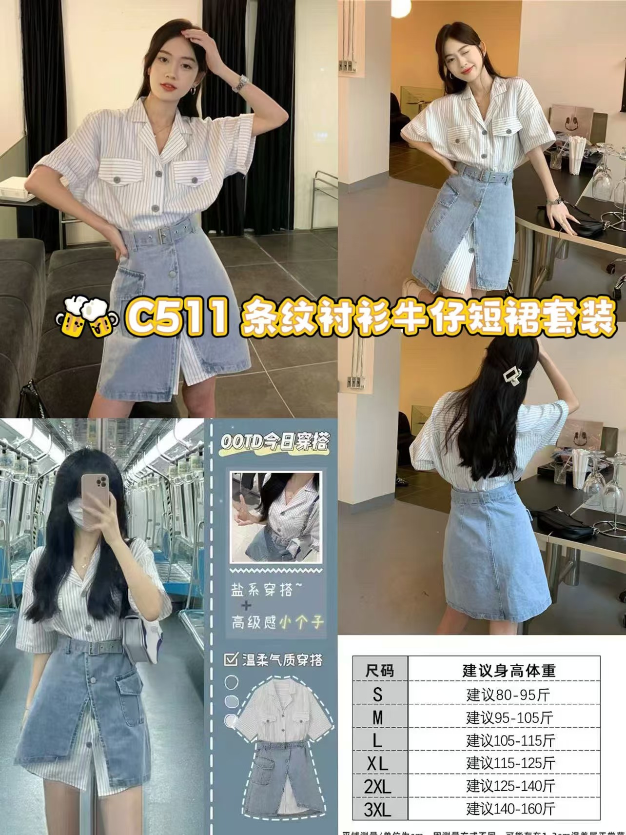 ZA超值年货拼单团🧧🍊 C511 条纹衬衫牛仔短裙套装 💰Rm57(1套)