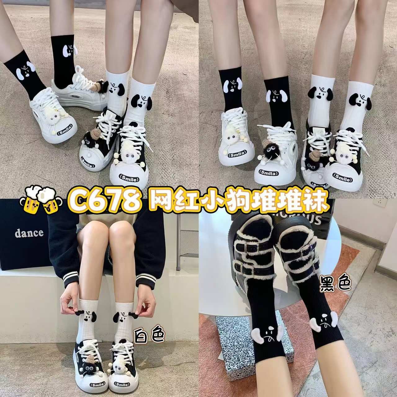 / C678网红小狗堆堆袜