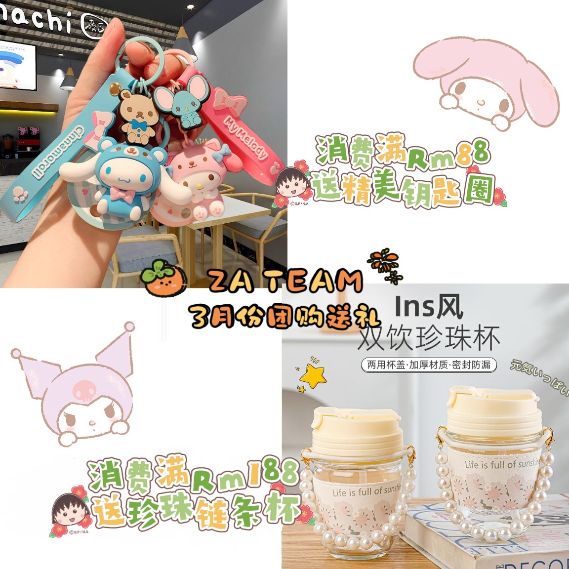 消费满Rm88送精美钥匙圈, 消费满Rm188送珍珠链条杯
