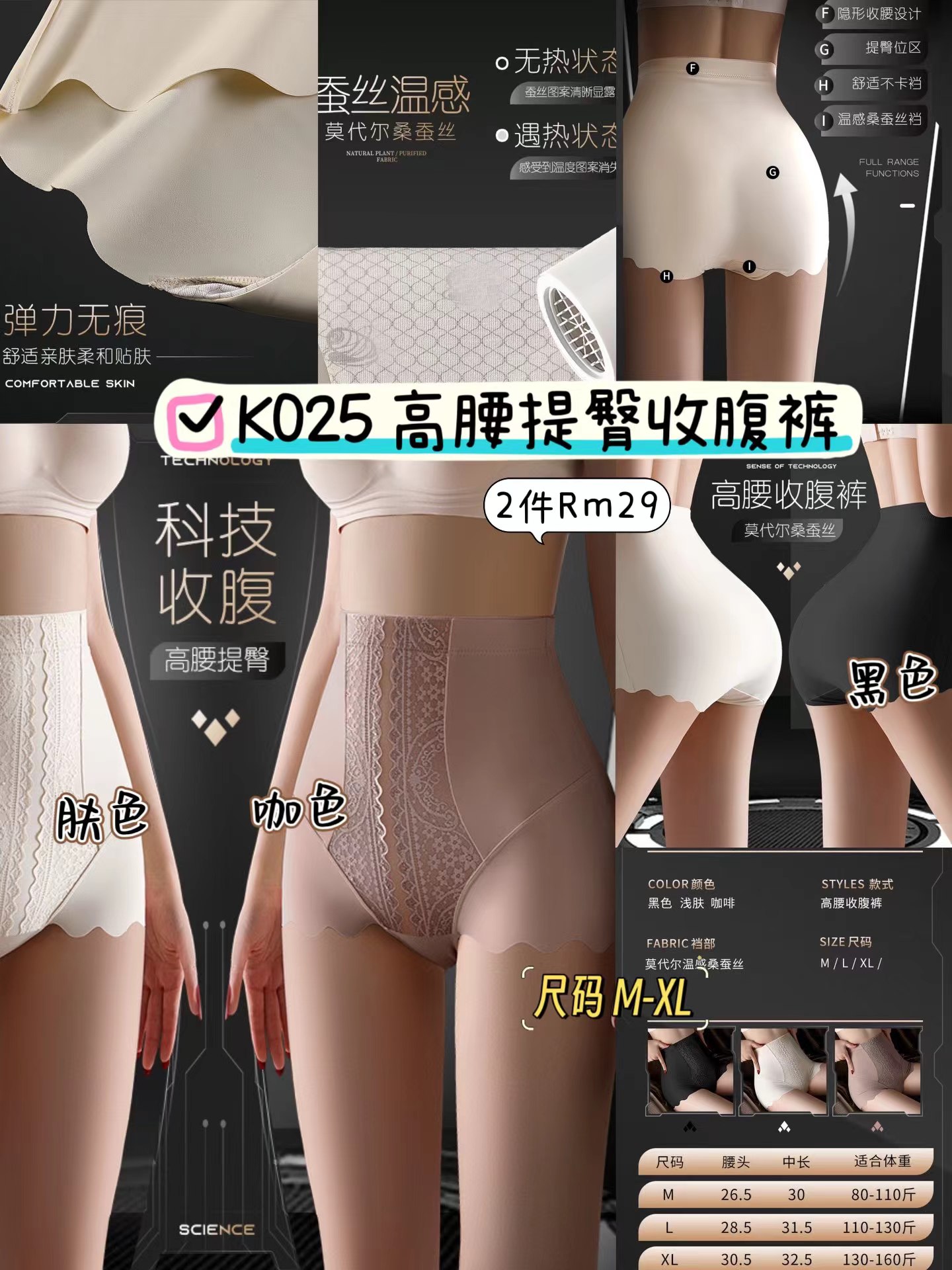 高弹力束腰,布质透气,不会过度紧勒❤️高级丝滑布料~整件超隐形透气,穿上完全看不见一丝凸痕 & 臀印,软FUFU的布料像云朵一样柔软🌸