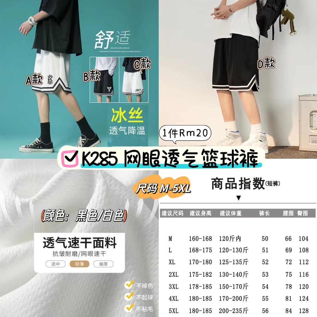 K285 网眼透气篮球裤 💰Rm20(1件)