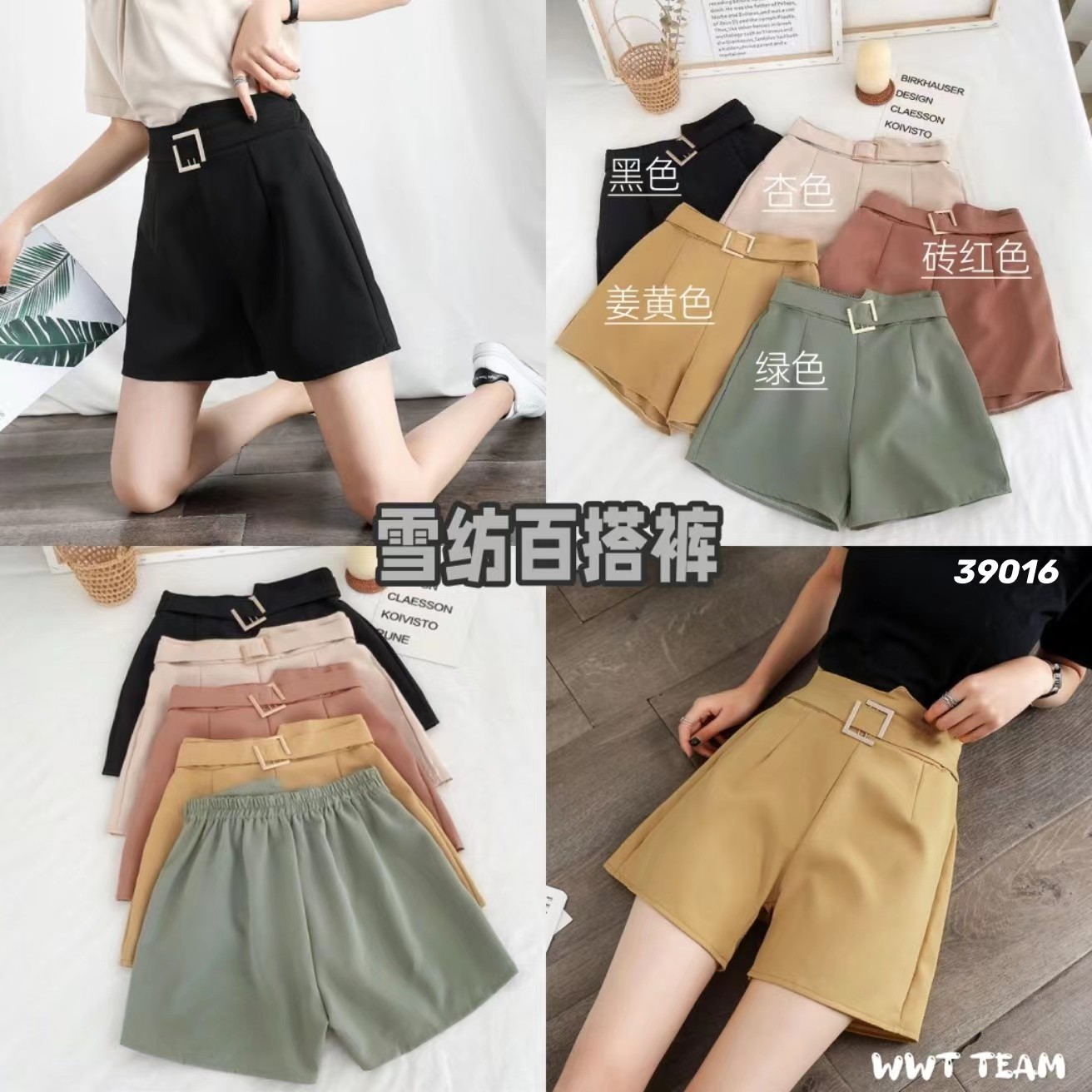 雪纺面料的短裤,这些颜色也太好看️了吧~~都是很温柔的糖果色系,后面松紧腰设计,前面有个假腰带设计很好看😍😍