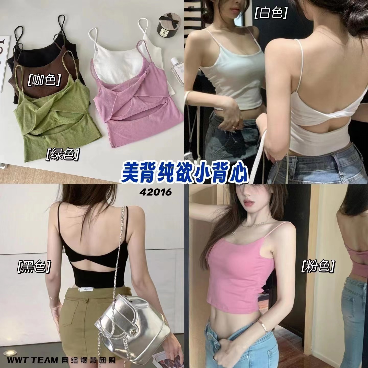 小性感的背心,心机都在背面🥰,里面还有着胸垫呢,直接穿,怎么搭配都好看,质量贼好👍🏻,均码适合40-65kg