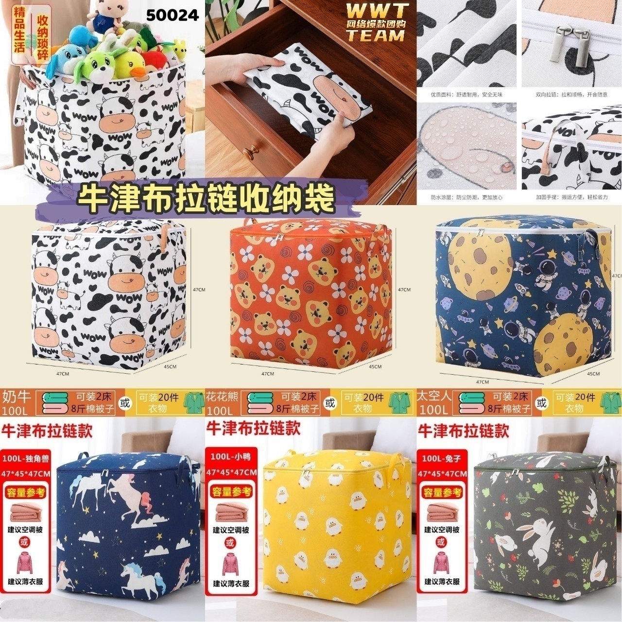 这款是我自己长期在用的收纳袋🥰,质量非常好也非常能装👍,牛津布耐磨不易破,脏了还可以清洗,拉链开关更容易拿取,收纳袋有两个提手方便提取