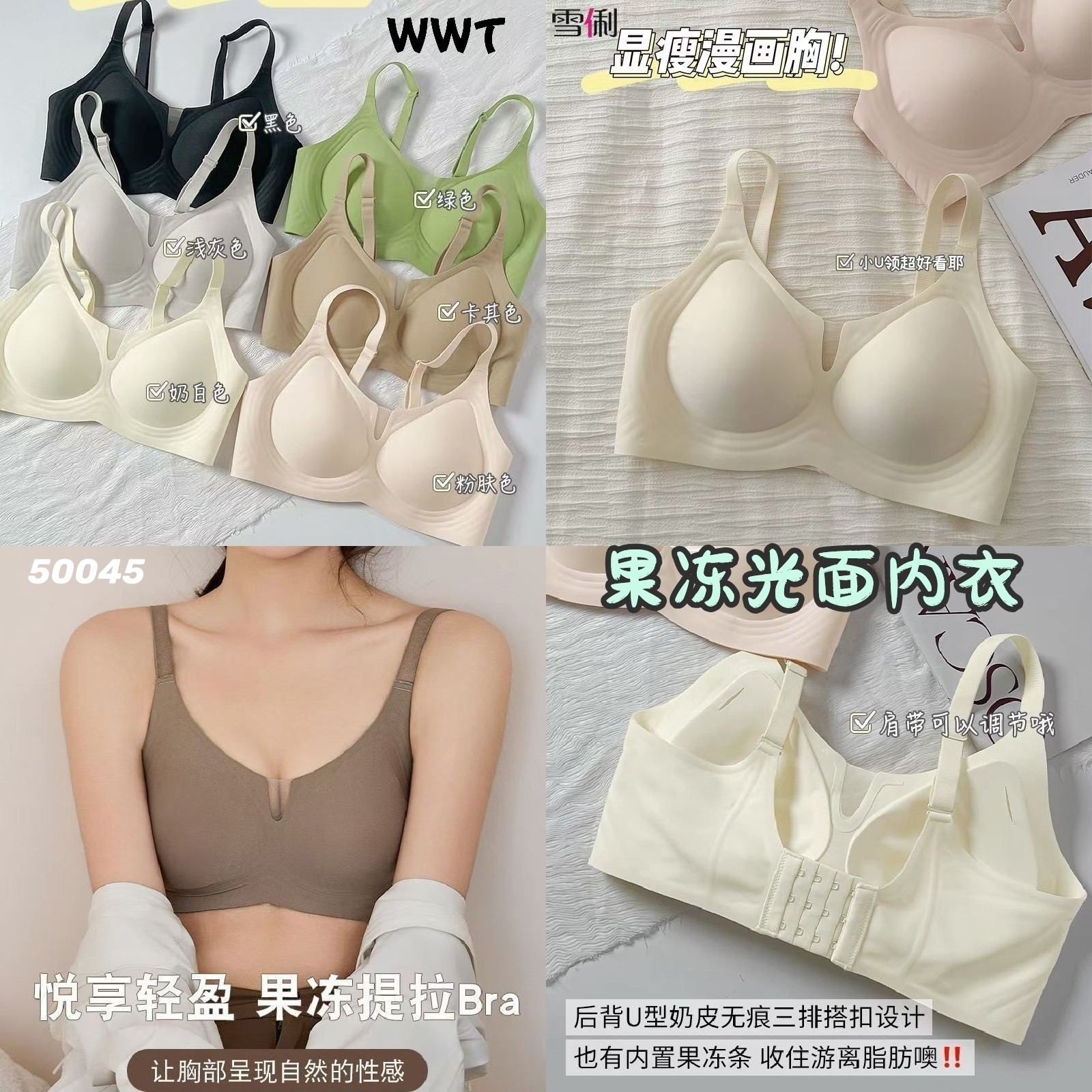 滑滑的面料,弹力肩带可调节,前面性感小V纱设计,整个侧翼都有做果冻条支撑,有效收住副乳肉肉🤩🤩