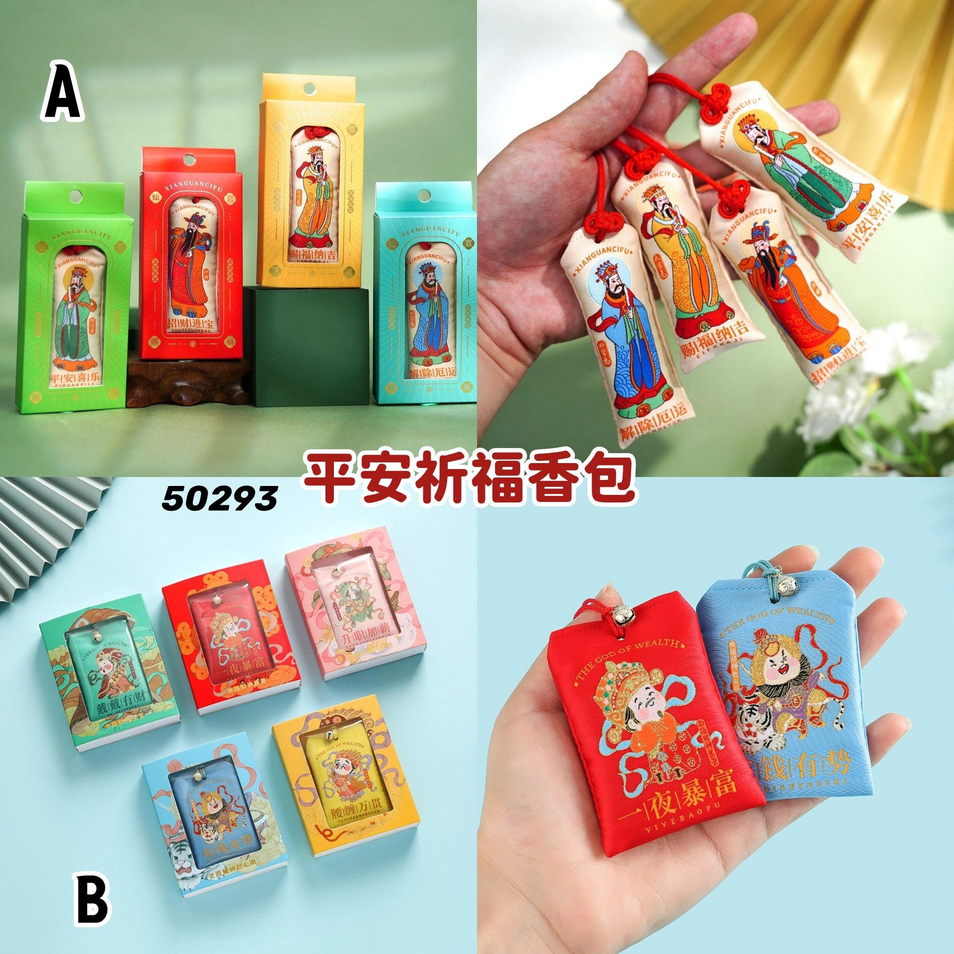 A款赐福纳吉, A款解除厄运, A款平安喜乐, A款招财进宝, B款一夜暴富, B款升职加薪, B款有钱有势, B款腰缠万贯, B款戴戴有财